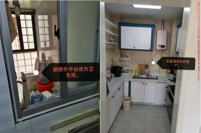 所謂互通式是指用戶在裝修時為了利用開發(fā)商贈送的陽臺或平臺,把廚房對外窗戶側(cè)的室外平臺與建筑外墻處封閉后作為衛(wèi)生間或淋浴間使用,導(dǎo)致廚房沒有自然通風;而密閉式廚房則是由于用戶設(shè)計或裝修原因把廚戶原有的窗戶封堵,無直通室外的門或窗戶,導(dǎo)致廚房完全處于密閉狀態(tài)!