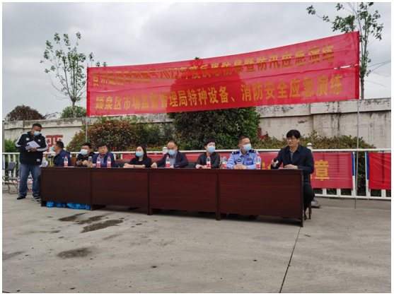 下午3點(diǎn)整,由阜陽(yáng)市城鄉(xiāng)建設(shè)局主辦,阜陽(yáng)市潁泉區(qū)市場(chǎng)監(jiān)督管理局、泉穎派出所協(xié)辦,百川能源阜陽(yáng)燃?xì)獬修k的2022年阜陽(yáng)市城市燃?xì)夥纯址辣叻姥磻?yīng)急演練在阜太路加氣站舉行。